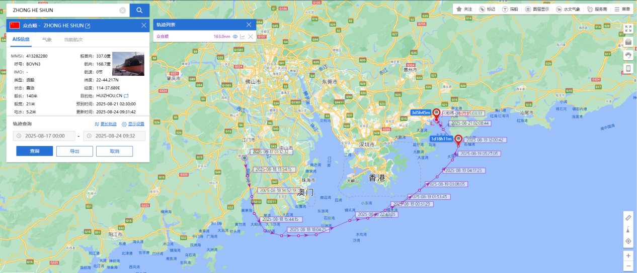 Ⅳ.通過AIS船舶定位系統,確定用工船舶的航行狀態和航行期間的用工軌跡,確保船舶運營事實。(見圖4)
