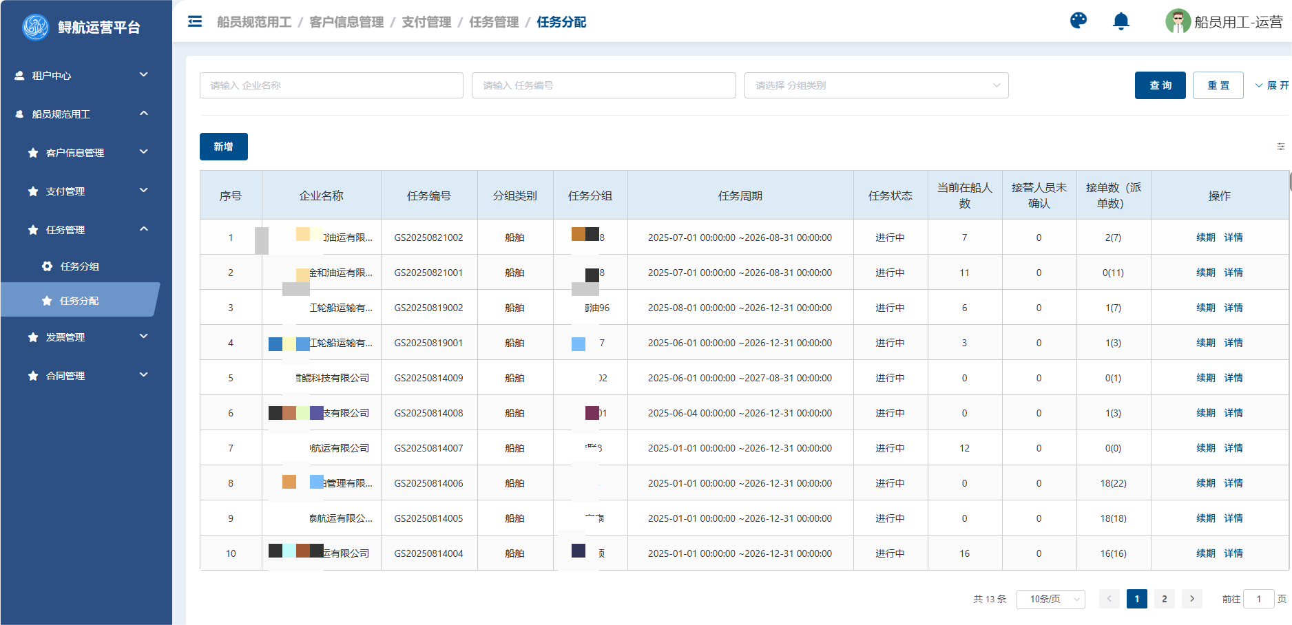就上述專業平臺所具備的要素,本文將通過“鱘航”軟件用工模塊,選取符合船員用工平臺必要條件的功能,作為樣本數據予以闡述。