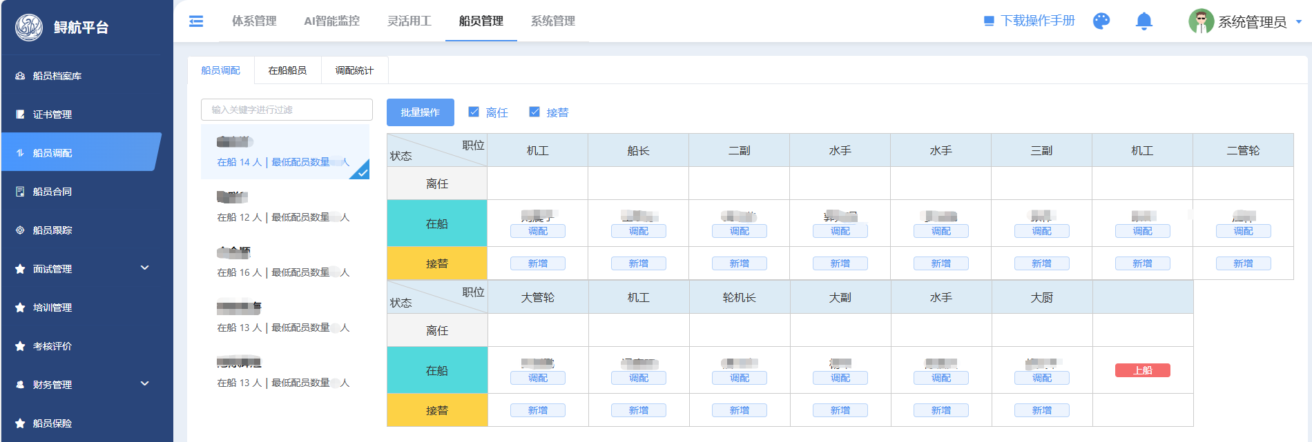 Ⅵ.通過船舶使用“鱘航”船員任務模塊(船員資格證書和所分配任務適格)確保船員資質與工作任務相匹配。(見圖6)