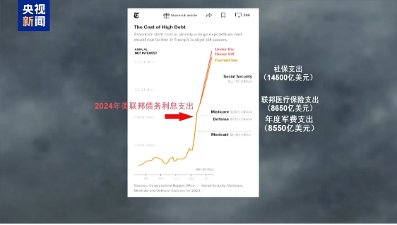 以2024年為例,美國聯邦債務的年度利息支出已超過年度軍費支出,大致相當于聯邦醫療保險的年度開銷。這筆錢比美國政府除社保之外的任何支出都要多,而“大而美法案”將加劇這種無度的揮霍。