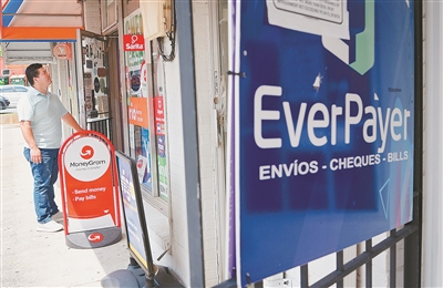 美國征收的匯款稅,給那些在美國生活成本日益上升同時還要支撐國內家人生活的移民增加了負擔。圖為美國馬里蘭州居民哈維爾·古茲曼走進VM Services門店,準備向洪都拉斯的家人匯款。