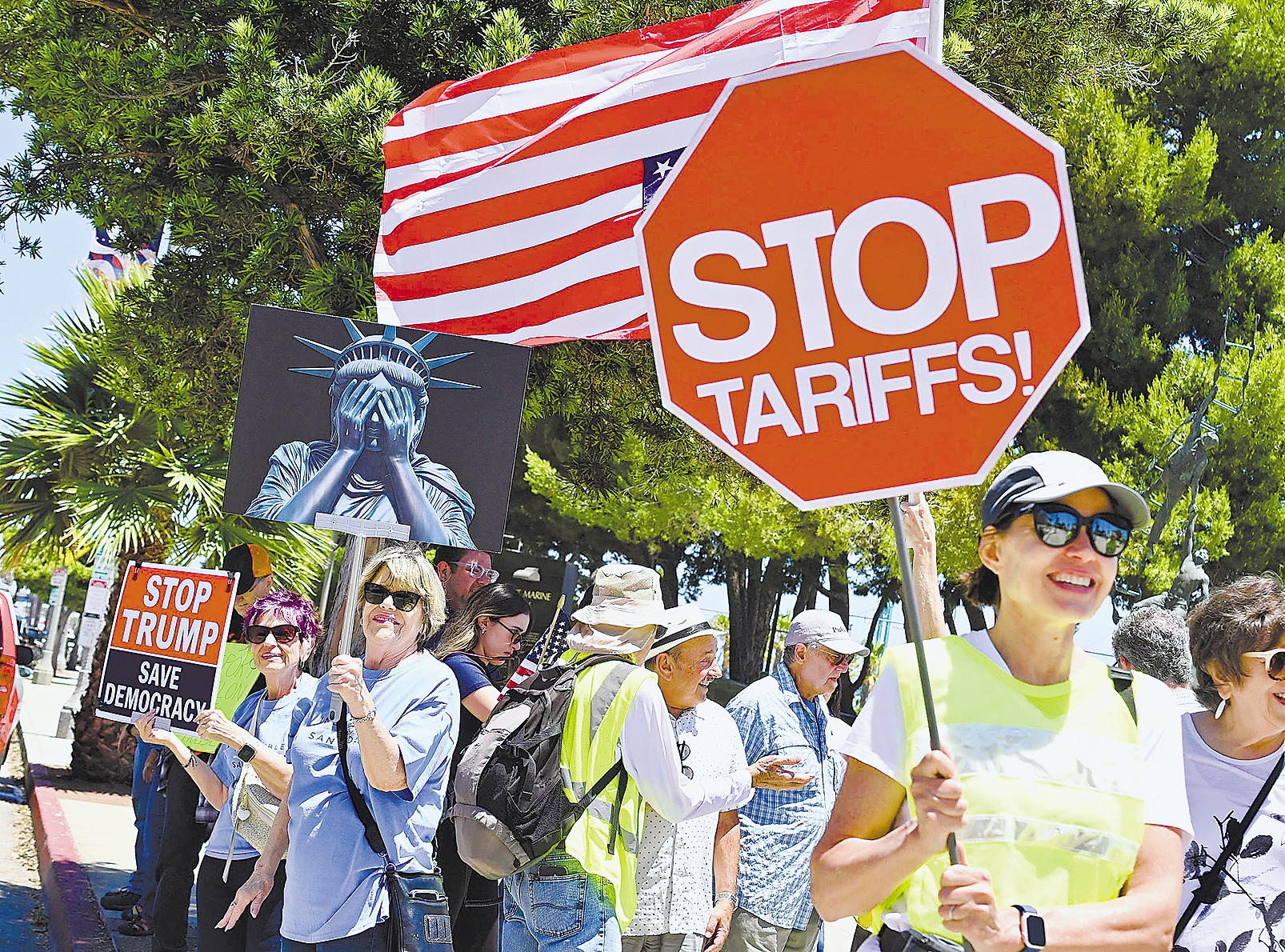 近日,美國洛杉磯民眾在洛杉磯港抗議特朗普關稅政策。