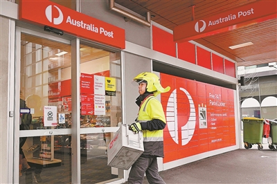由于美國取消進口包裹“小額豁免”政策,澳大利亞以“局勢復雜且迅速演變”為由,暫停了部分對美國的郵政遞送服務。圖為澳大利亞墨爾本的一名郵遞員走進澳大利亞郵政門店。