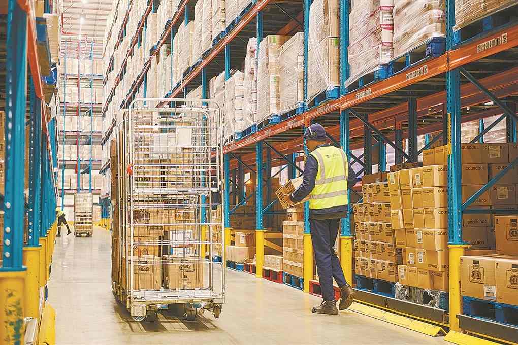 近日,世界銀行發布《非洲脈搏》報告稱,由于通脹下降和外貿狀況改善,撒哈拉以南非洲地區2025年經濟增長預期被上調至3.8%,高于此前預測的3.5%。圖為南非約翰內斯堡一家新開業的超市配送中心,一名工人在為所配送的超市收集商品。