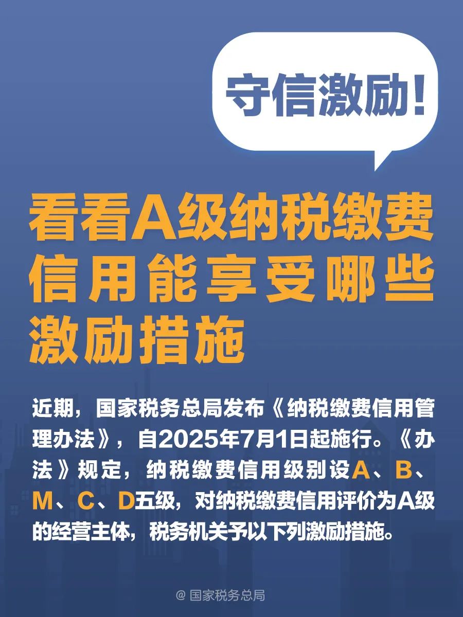 守信激勵!看看A級納稅繳費信用能享受哪些激勵措施