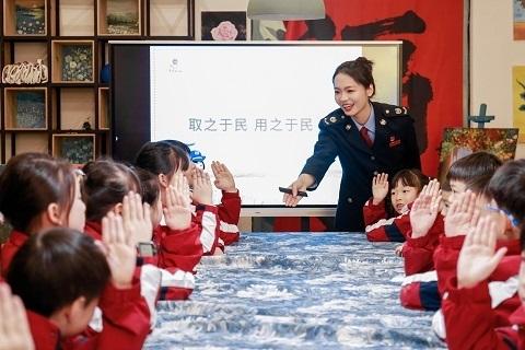 近日,國家稅務總局溫嶺市稅務局與轄區中小學校聯合開展“開學第一課 童心話稅收”稅法教育活動。稅務干部走進校園、走上講臺,以情景演示、知識搶答等方式,為孩子們講解稅法知識。 (江海波 虞立教 攝)
