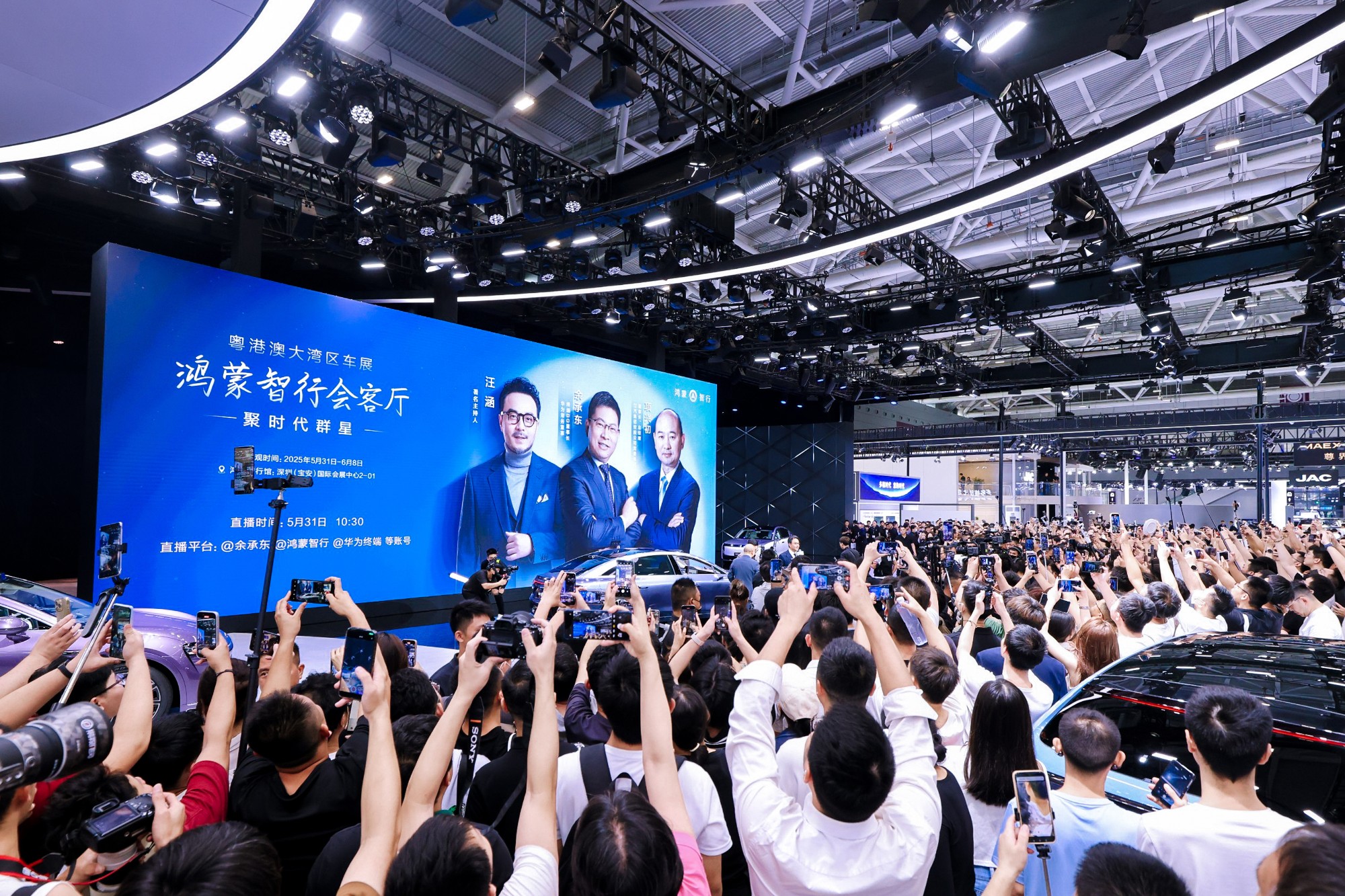 日前,2025粵港澳大灣區(qū)車展在深圳國際會展中心(寶安)落下帷幕。圖為觀眾在鴻蒙智行展臺觀展。