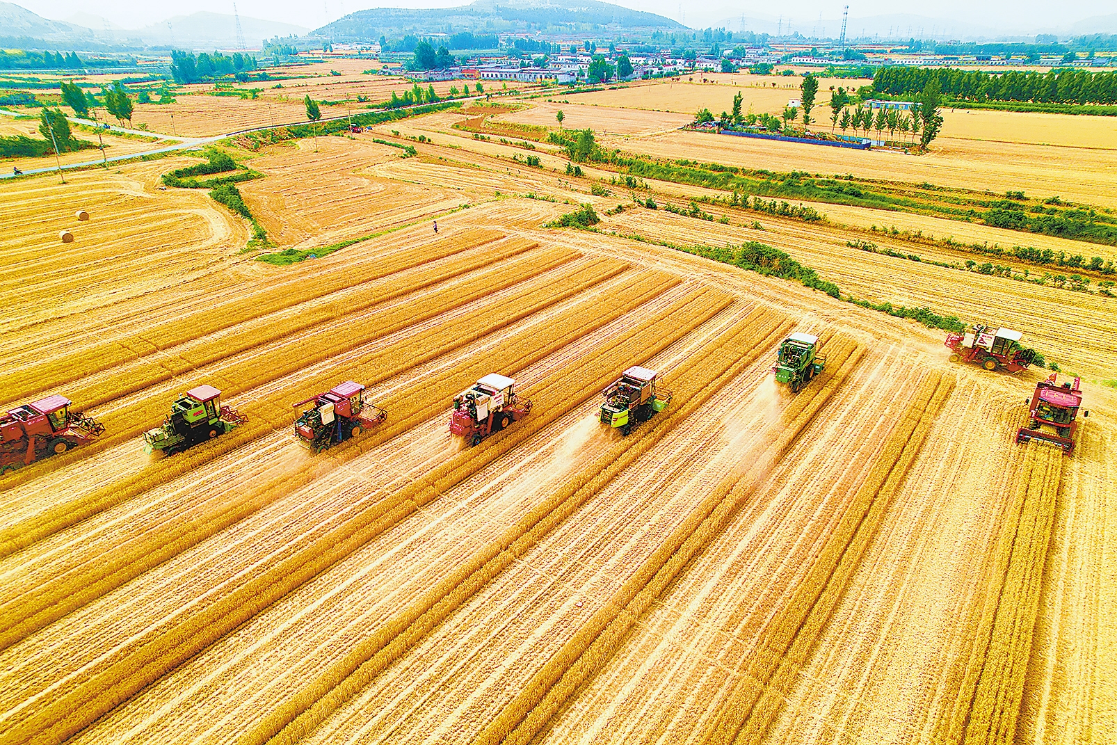麥浪翻滾,金穗飄香。在山東省泰安市槐樹坡村的麥田里,大型聯合收割機來回穿梭,伴隨著機器的轟鳴聲,麥穗被卷入機倉,收割、脫粒、除雜一氣呵成。“三夏”是全年糧食生產的關鍵時期。泰安市高度重視“三夏”生產,已累計投入4978臺小麥聯合收割機,合理規劃作業區域與時序,統籌組織調配機械,實現了跨區域、大規模聯合作業。目前,機械收獲小麥面積已達39393.33公頃,占已收獲小麥面積的99.16%。