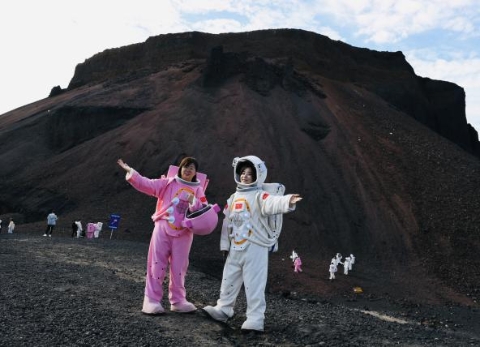 當下,內蒙古烏蘭察布市的烏蘭哈達火山地質公園正值旅游高峰期。這里獨特的地質景觀,讓游客們恍若置身于火星表面。游客們紛紛攀爬火山,身著“宇航服”拍照打卡。