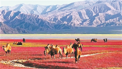秋季,在青海省海西蒙古族藏族自治州烏蘭縣,都蘭湖國家濕地公園岸邊的鹽生植物鹽爪爪染紅了大地,似一塊巨大的紅地毯,與藍(lán)天、白云、高山交相輝映,和前來覓食的駱駝一起,形成了一幅色彩斑斕的油畫。都蘭湖國家濕地公園水源充足、牧草茂盛,是野生動(dòng)物理想的棲息地,國家重點(diǎn)保護(hù)動(dòng)物黑頸鶴、斑頭雁、鵝喉羚等許多動(dòng)物在此繁衍生息,是青藏高原濕地原生態(tài)系統(tǒng)的典型代表。 近年來,烏蘭縣采取封灘、育林、育草、減畜等措施加強(qiáng)濕地的保護(hù)和利用。當(dāng)?shù)囟悇?wù)部門發(fā)揮綠色稅制正向激勵(lì)作用,鼓勵(lì)企業(yè)加大節(jié)能環(huán)保投入,減少污染物排放,守護(hù)高原濕地。同時(shí),深化與自然資源等部門的溝通聯(lián)系,完善信息共享機(jī)制,共同構(gòu)建生態(tài)保護(hù)工作格局。