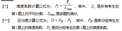 1.難度系數。難度系數*代表試題難度,是衡量考試質量的一個重要指標,取值在0~1之間,越接近于1,試題難度越低。就職業資格考試來說,整體試卷難度以中等為宜,試題難度系數在0.3~0.7之間為好,低于0.3則題目偏難,高于0.7則題目偏易。